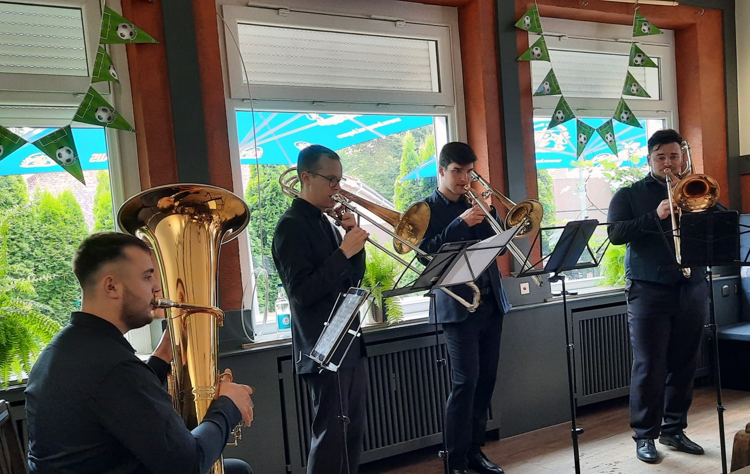 Knapp 60 Musikbegeisterte kamen beim Frühschoppenkonzert am Sonntag, den 07.07.2024 auf ihre Kosten. Die vier Musiker der „Festival:Philharmonie Westfalen“ hatten Posaunen und eine Tuba mitgebracht und ein zweiteiliges Programm zusammengestellt: „Classic“ und „Beatles meet Sinatra“. Während im zweiten Teil das Mitsingen des Publikums zu den bekannten Evergreens erwünscht war, vermittelten die Künstler zu Anfang eine sonntägliche, fast festliche Stimmung bei Fork. Gut gelaunt wünschten wir uns am Schluss einen „schönen Sonntag“ und dass es Konzerte dieser Art öfter geben möge!