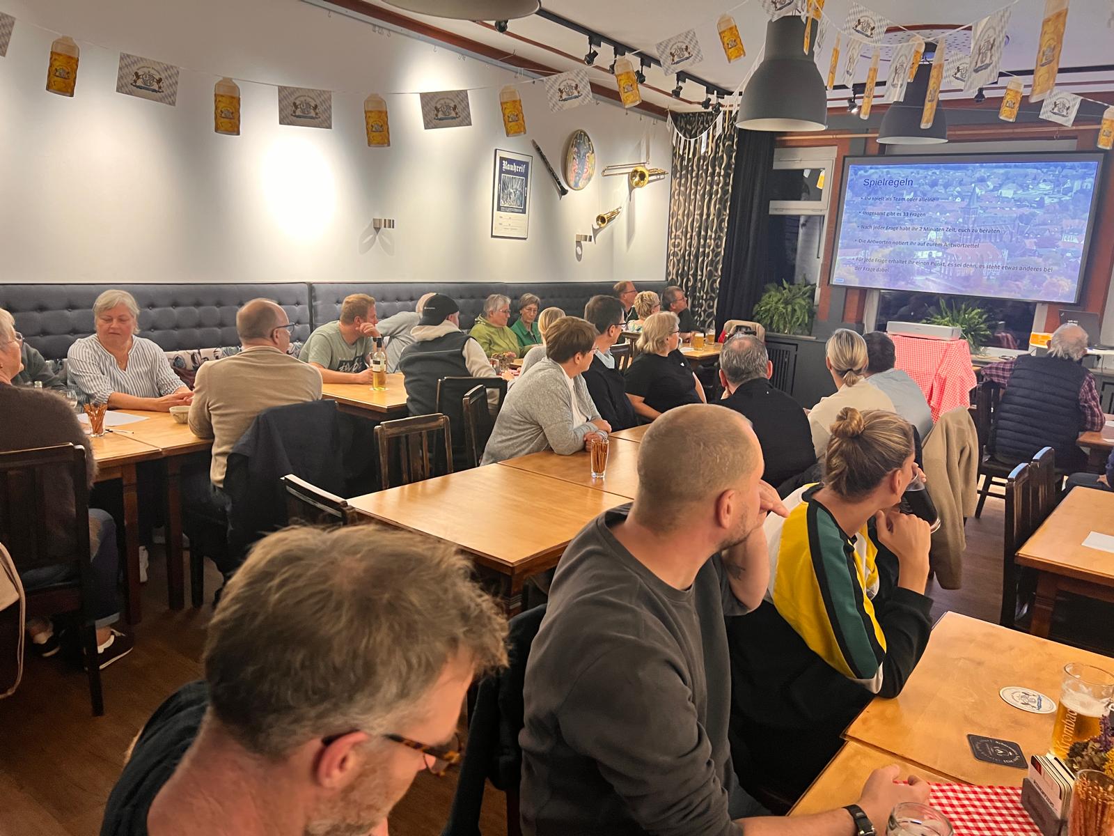 Viel Spaß gehabt und am Ende sogar noch was gelernt: Für die gut 30 Teilnehmer beim Velen-Quiz mit Wolf-Dieter Lassotta am Donnerstag (9. Oktober) stimmte die Mischung. Fast zwei Stunden lang suchten und fanden die Quizzer in der Wirtschaft Fork 1870 Antworten auf die vielen Fragen rund ums Thema Velen, die der Historiker mitgebracht hatte. Ob Bilder, die es zu lokalisieren galt oder Zahlen, die geschätzt werden mussten: Von schwierig bis einfach war alles dabei. Für die besten Quizzer gab es am Ende einen 20-Euro-Gutschein und für den Quizmaster eine kleine Anerkennung und viel Applaus.